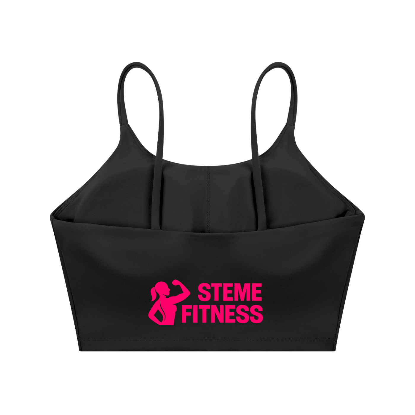 $22.99Black cropped sports tank with spaghetti straps (stretchy but non-adjustable) and built in (removable) bra cups. Branding is only on the back with a a 6” length in the back. 87% nylon, 13% spandex. Please allow 2-3 weeks for delivery.